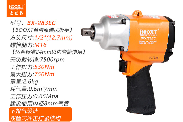 東莞市強(qiáng)勁五金工具有限公司提供臺(tái)灣BOOXT波世特品牌氣動(dòng)工具,雙錘氣動(dòng)扳手BX-283EC廠家直銷,首件享特價(jià)。咨詢熱線:4008301980