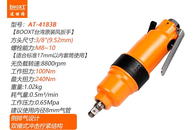 東莞市強(qiáng)勁五金工具有限公司提供臺(tái)灣BOOXT波世特品牌氣動(dòng)工具,風(fēng)動(dòng)扳手AT-4183B廠家直銷,首件享特價(jià)。咨詢熱線:4008301980