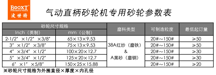 此文關(guān)鍵詞:氣動(dòng)直柄砂輪機(jī)用砂輪,風(fēng)動(dòng)直式砂輪機(jī)用砂輪,BOOXT直銷