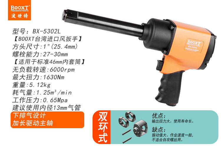 東莞市強勁五金工具有限公司提供臺灣BOOXT波世特品牌氣動工具,加長軸氣動扳手BX-5302L廠家直銷,首件享特價。咨詢熱線:4008301980