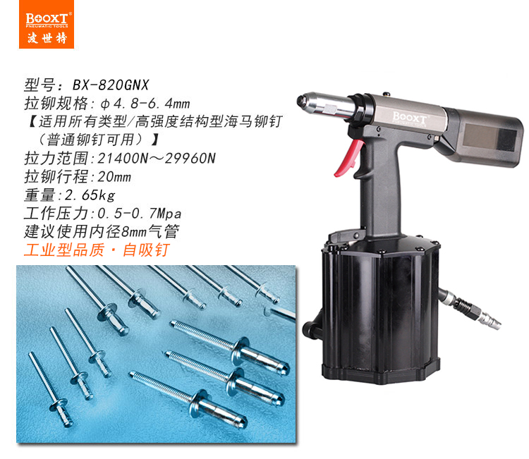 東莞市強(qiáng)勁五金工具有限公司提供臺(tái)灣BOOXT波世特品牌氣動(dòng)工具,自吸式氣動(dòng)海馬鉚釘槍BX-820GNX廠家直銷,首件享特價(jià)。咨詢熱線:4008301980