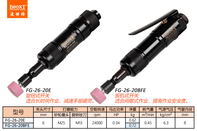 東莞市強(qiáng)勁五金工具有限公司提供臺灣BOOXT波世特品牌氣動(dòng)工具,氣動(dòng)直磨機(jī)FG-26-20BFE廠家直銷,首件享特價(jià)。咨詢熱線:4008301980