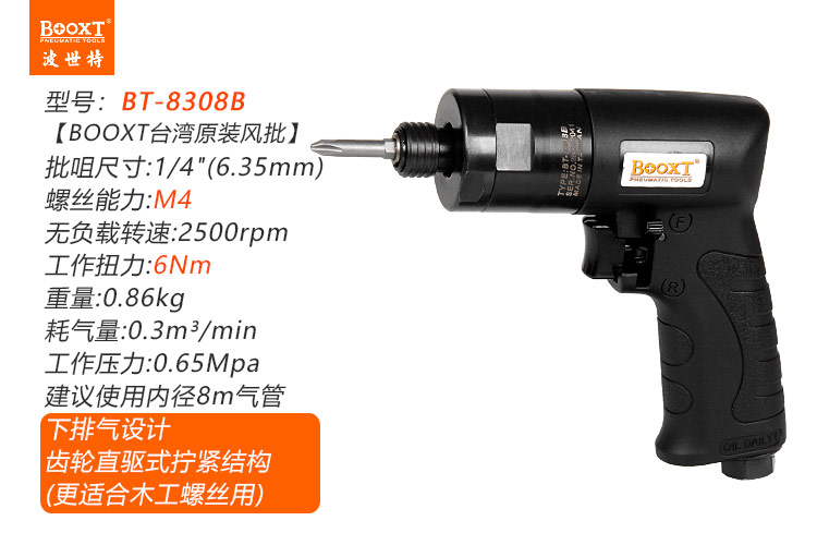 東莞市強勁五金工具有限公司提供臺灣BOOXT波世特品牌氣動工具,自攻牙風批BT-8308B廠家直銷,首件享特價。咨詢熱線:4008301980
