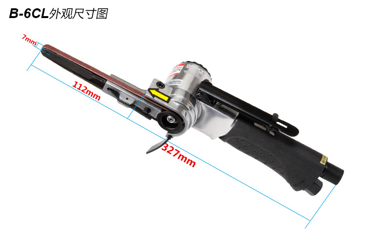 • 產(chǎn)品參數(shù): 砂帶尺寸:6×330mm; 空載轉(zhuǎn)速:20000rpm; 工具長度:327mm; 工具重量:0.86kg; 耗 氣 量:0.4m3/min; 噪 音 值:84db(A) 使用工作氣壓:0.65Mpa; 推薦使用內(nèi)徑8mm氣管; 平時(shí)使用應(yīng)多加氣動(dòng)油保養(yǎng). 【工業(yè)型】