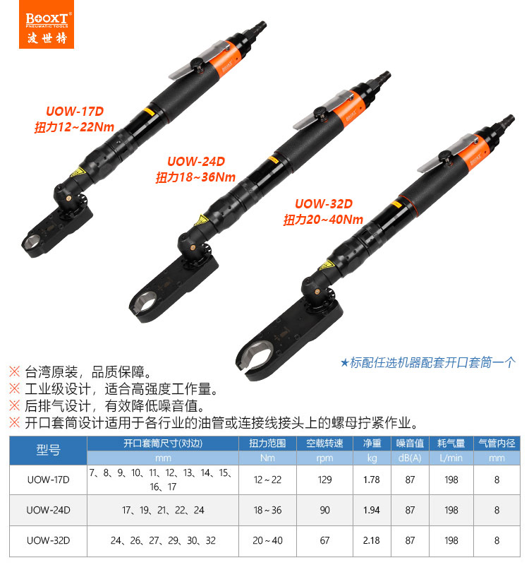 東莞市強(qiáng)勁五金工具有限公司提供臺(tái)灣BOOXT波世特品牌氣動(dòng)工具,大扭矩氣動(dòng)開(kāi)口扳手UOW-24D廠家直銷,首件享特價(jià)。咨詢熱線:4008301980