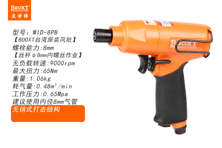 東莞市強勁五金工具有限公司提供臺灣BOOXT波世特品牌氣動工具,無銷式氣動螺絲刀MID-8PB廠家直銷,首件享特價。咨詢熱線:4008301980